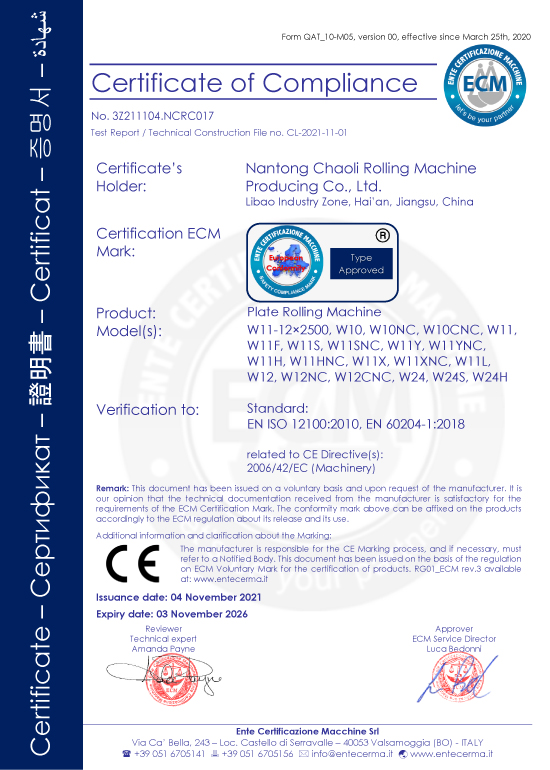 南通超力卷板機制造有限公司,國家高新技術企業,中國卷板機機床專業設計、研發與制造企業。公司承擔國家火炬計劃項目3項,《JB/T12830-2016/數控二輥卷板機》、《JBCPZT0758-2016/數控矯圓機》行業標準起草單位,中國鍛壓協會會員,擁有W10、W11和W12等出口產品質量許可證。