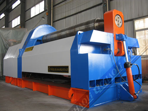 弧線四輥卷板機的兩側(cè)輥做弧線升降運動,下輥和兩側(cè)輥升降采用液壓傳動。升降位移采用計算機控制、液壓控制翻到,設(shè)備采用NC或CNC控制。