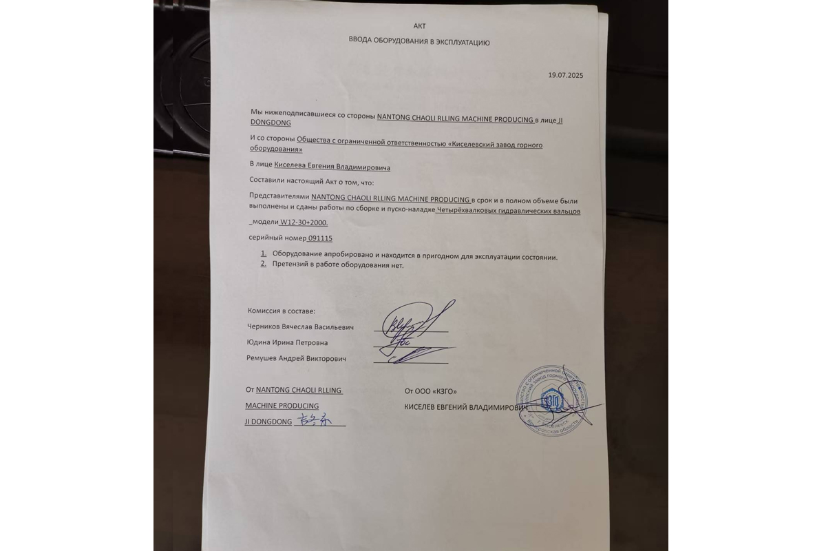 卷板機 >> 新聞中心 >> 一批出口俄羅斯的卷板機設(shè)備完成調(diào)試,順利交付獲客戶贊譽?